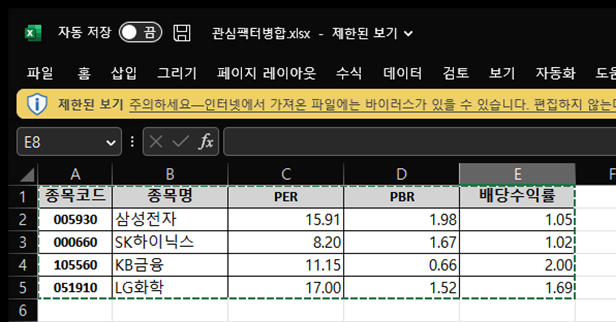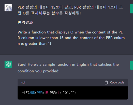 질문: PER 컬럼의 내용이 15보다 낮고, PBR 컬럼의 내용이 1보다 크면 O를 표시해주는 함수를 작성해줘!