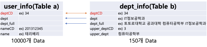 두 테이블의 deptCD가 같으면, user_info의 dept와 dept_full을 자동으로 업데이트 해주는 구문을 짜고싶다.